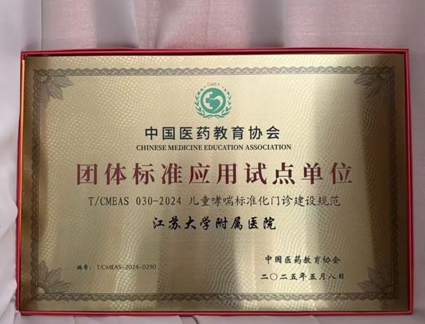 近日,由中国医药教育协会颁发的《T/CMEAS 030-2024 儿童哮喘标准化门诊建设规范》团体标准应用试点单位的牌匾...